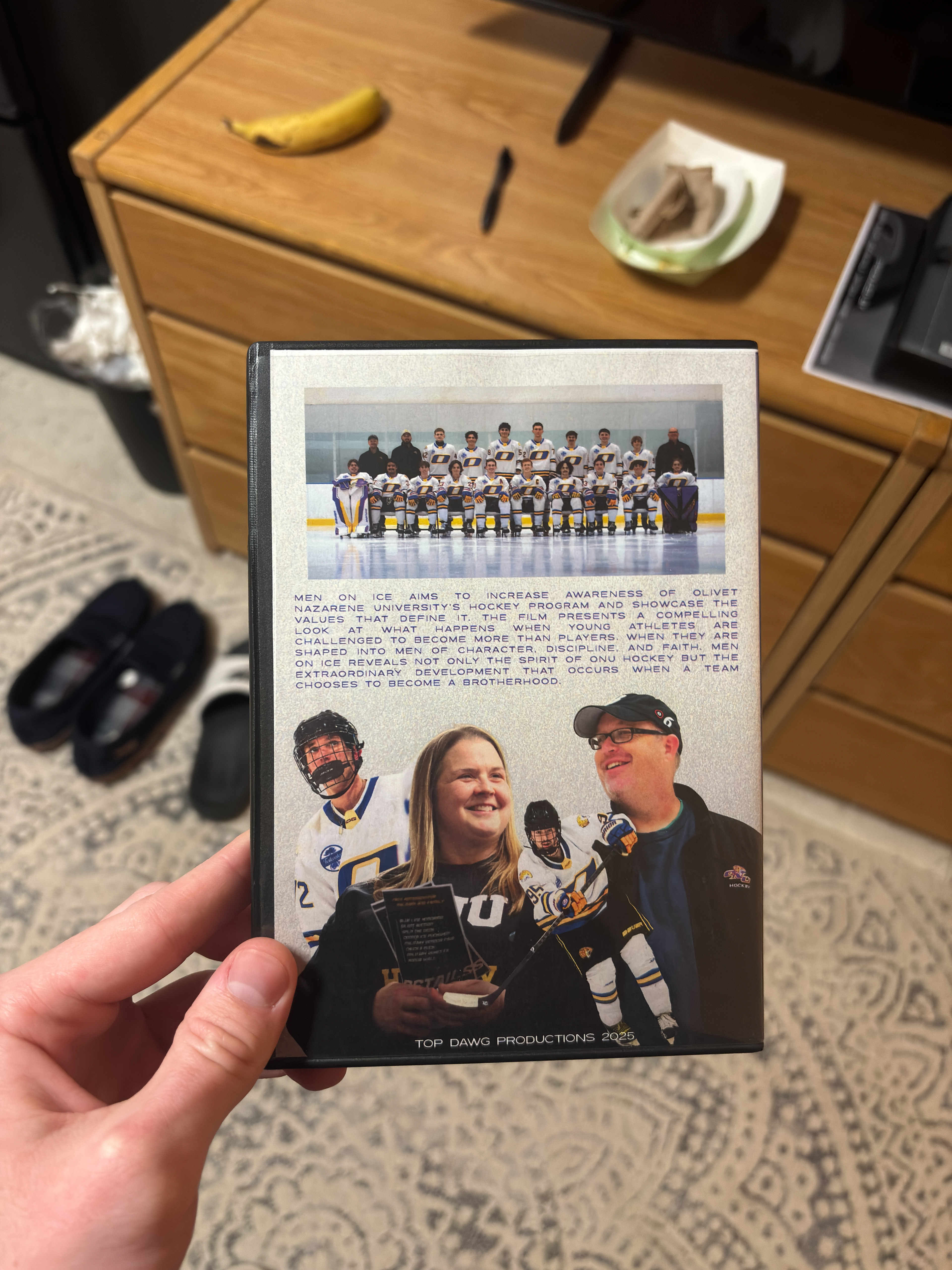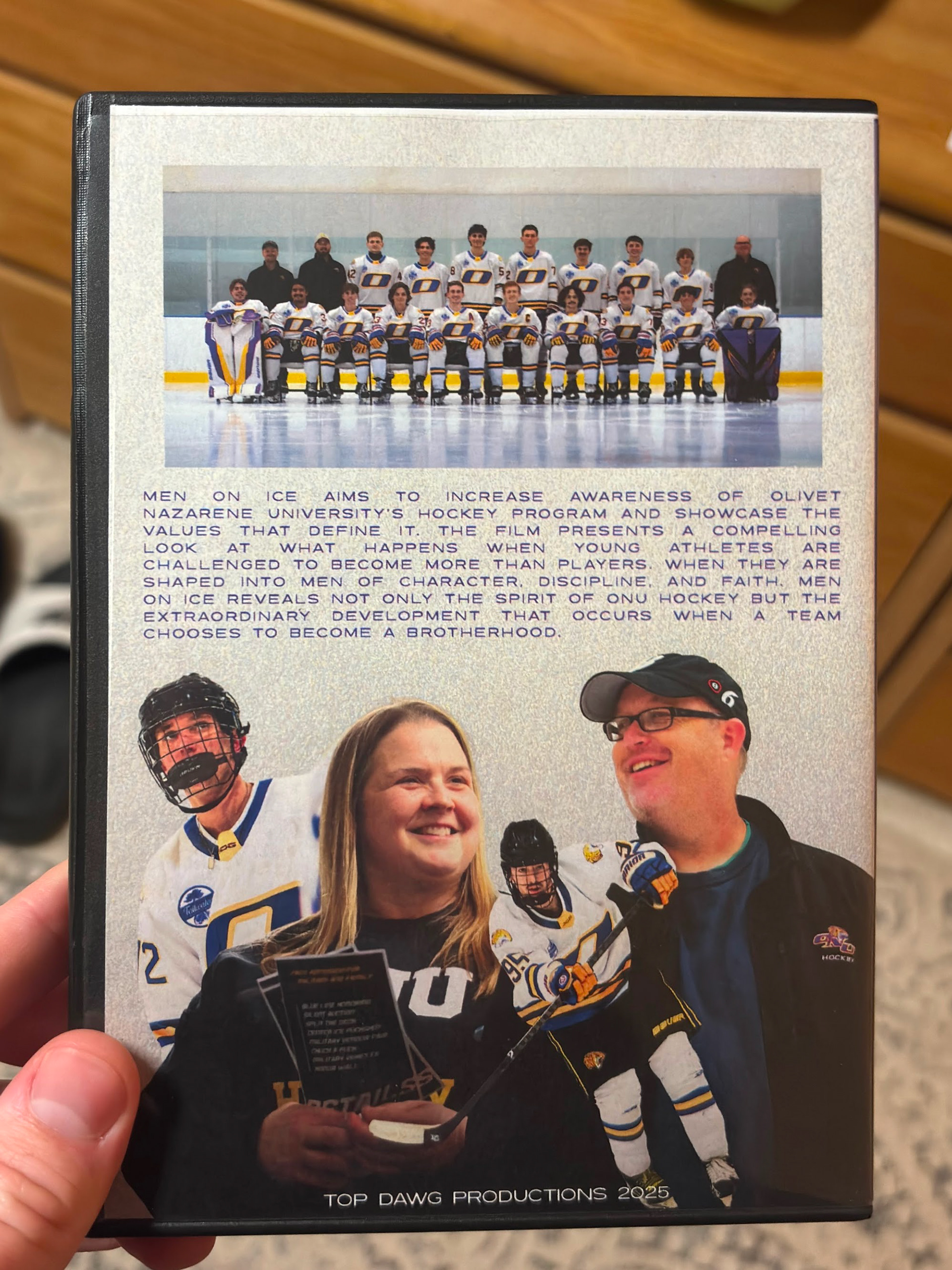 Men on Ice explores the heart and identity of the Olivet Nazarene University hockey team, a young program that has grown from humble beginnings into a team defined by purpose and character. The documentary centers on Head Coach Bjorne, whose coaching philosophy is grounded in the belief that hockey is more than a sport; it is a tool for shaping disciplined, humble, and faith-rooted men. Through his leadership and partnership with his wife, Assistant Coach Jodie, the film highlights how a culture of accountability, compassion, and spiritual grounding has taken root in a program only four years old.